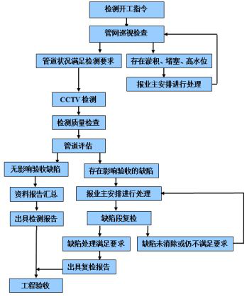 收集资料现场勘察-编制检测方案-清洗疏堵排水-采集影像资料-总结数据-出检测报告-验收数据准确度-提交评估报告。