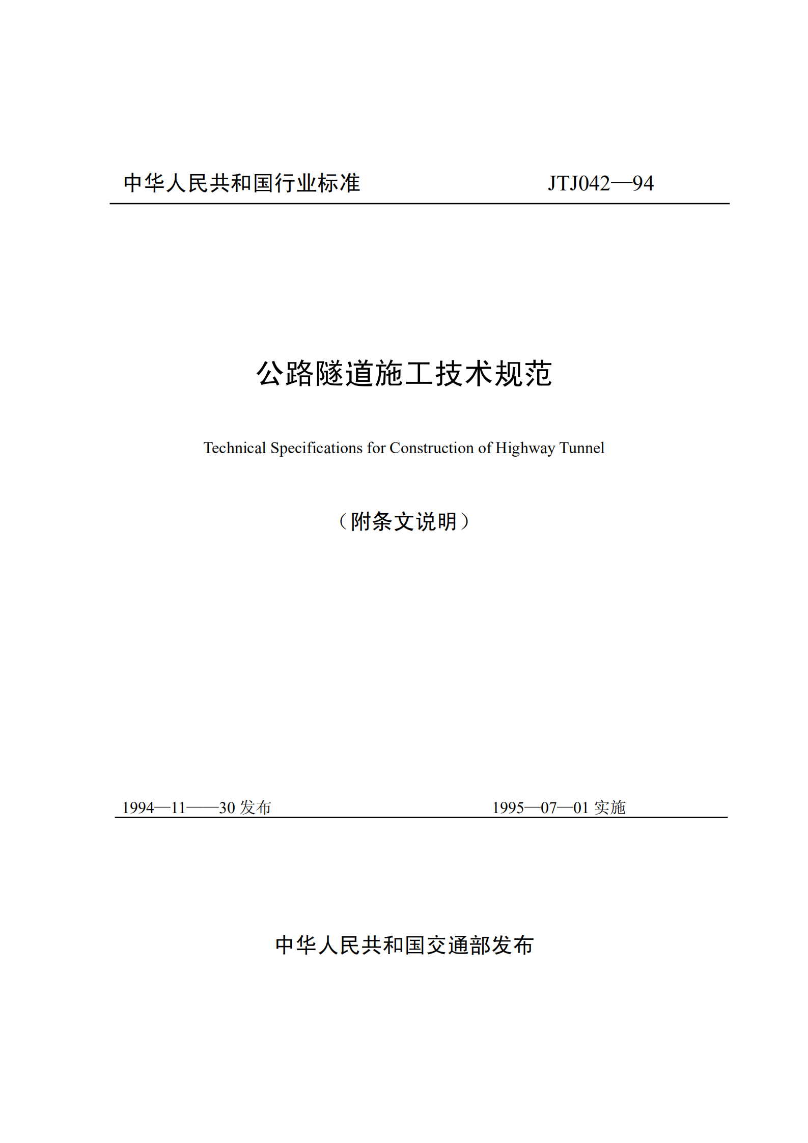 公路隧道施工技术规范(无附录)