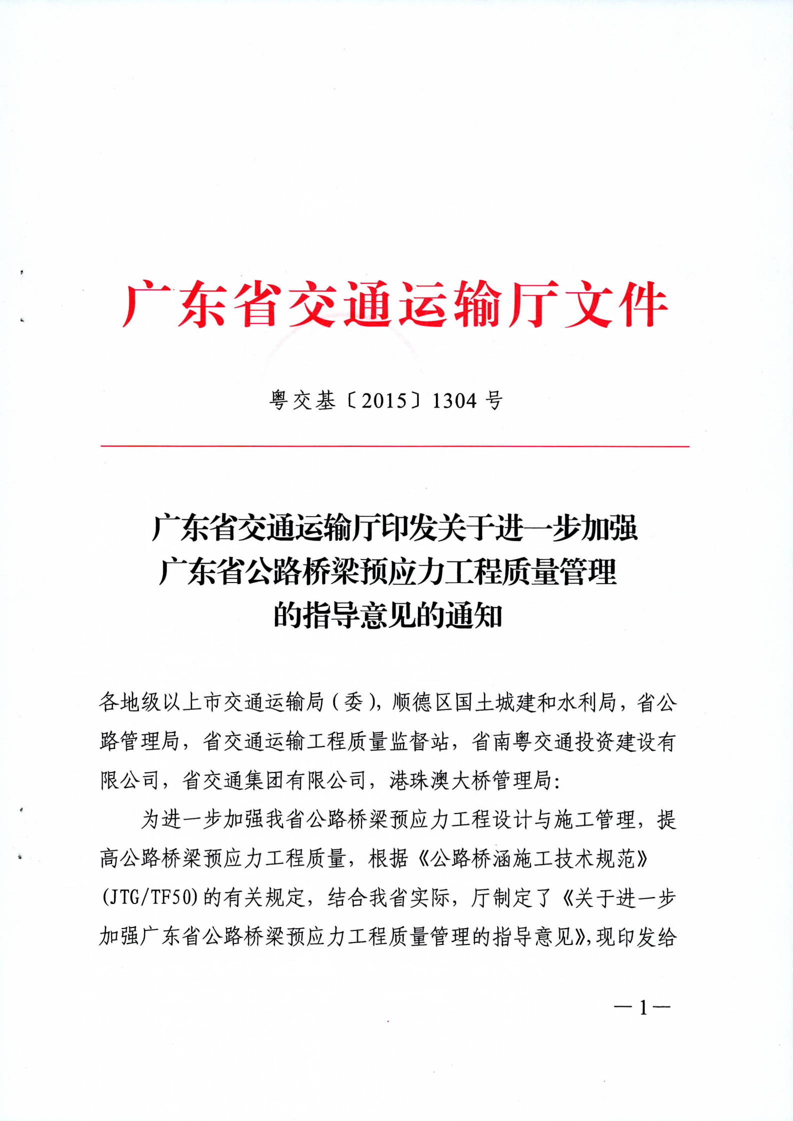 关于进一步加强广东省公路桥梁应力工程质量管理的指导意见的通知.pdf